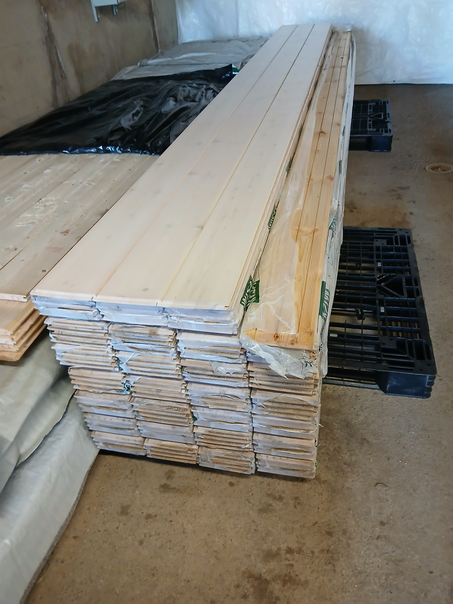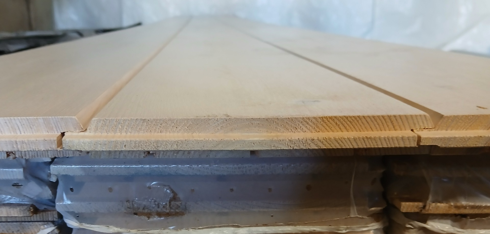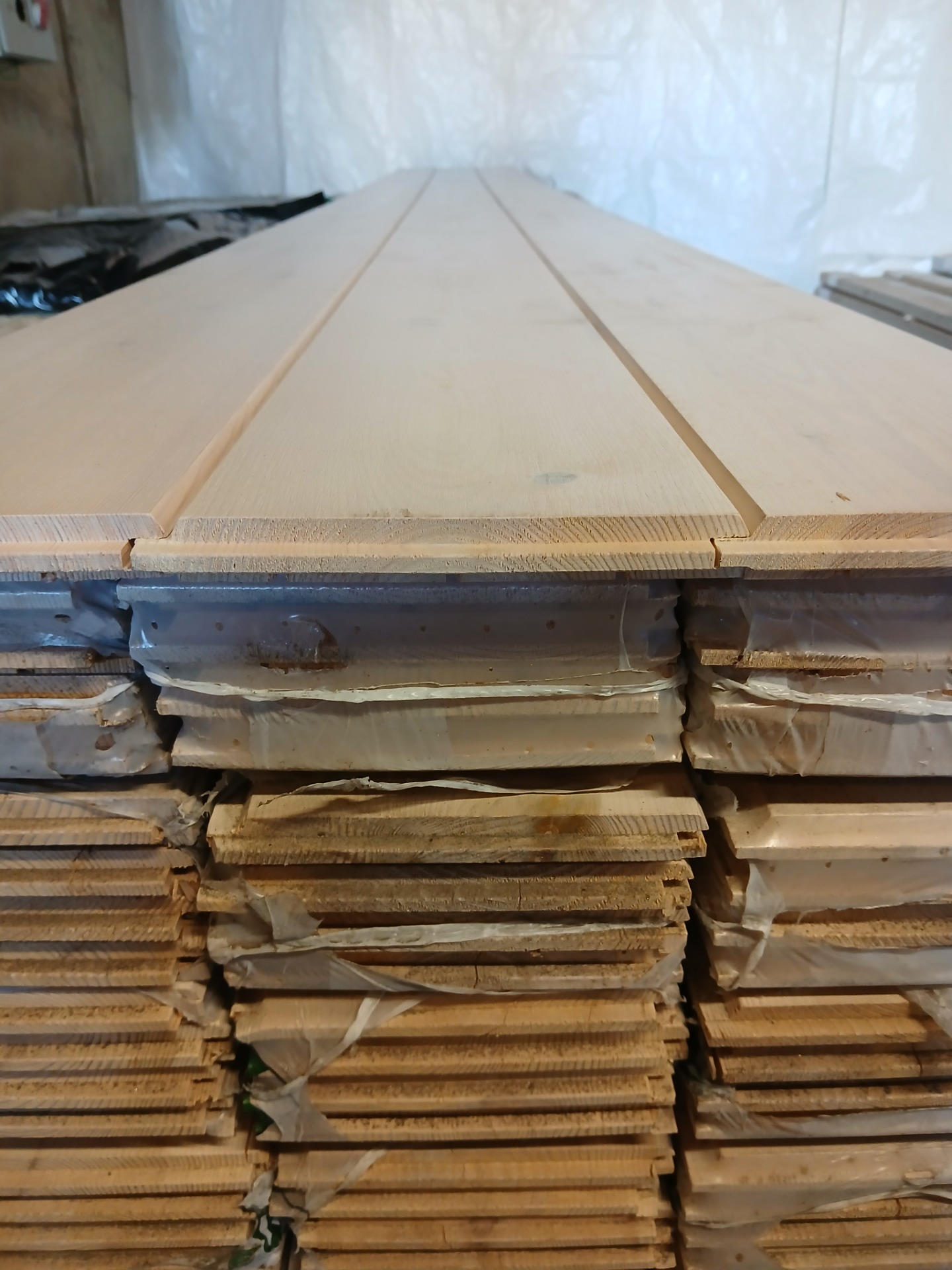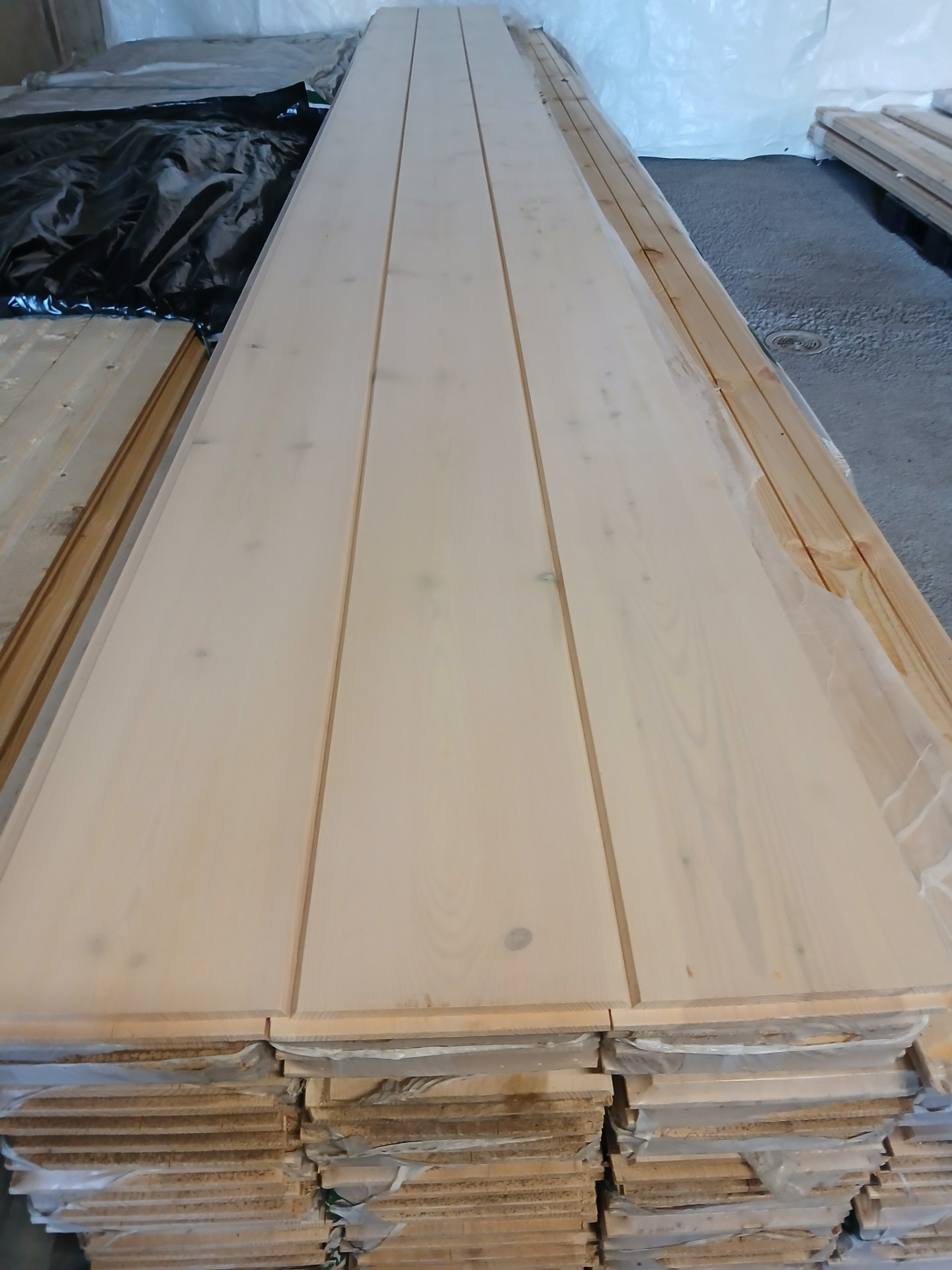Valkolakattu leveä hirsipaneeli. Valmiiksi pintakäsitelty ja päätypontattu.