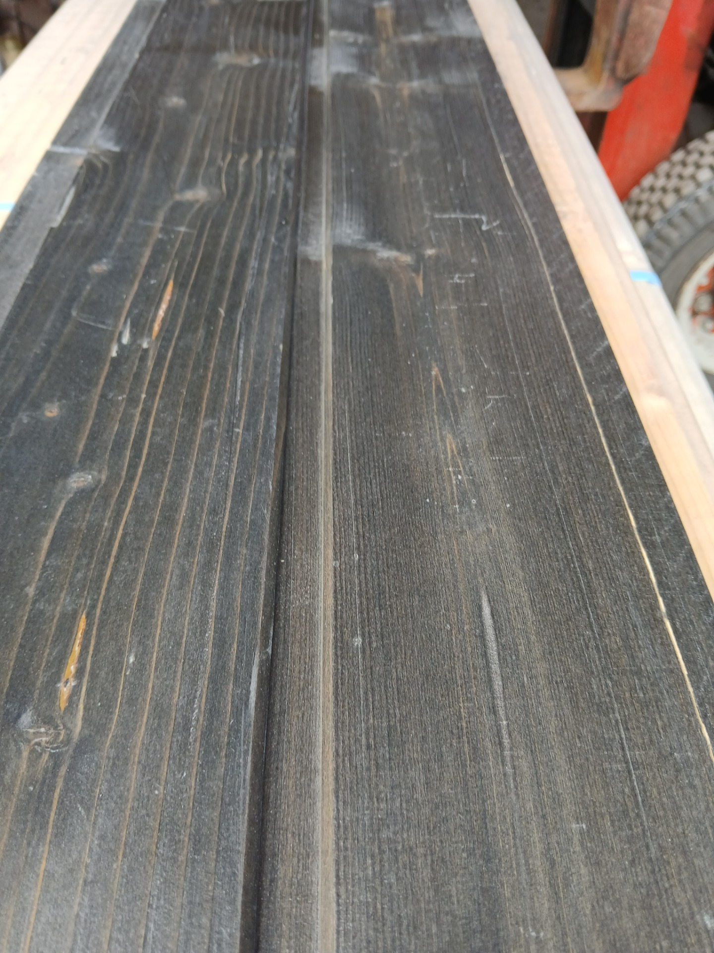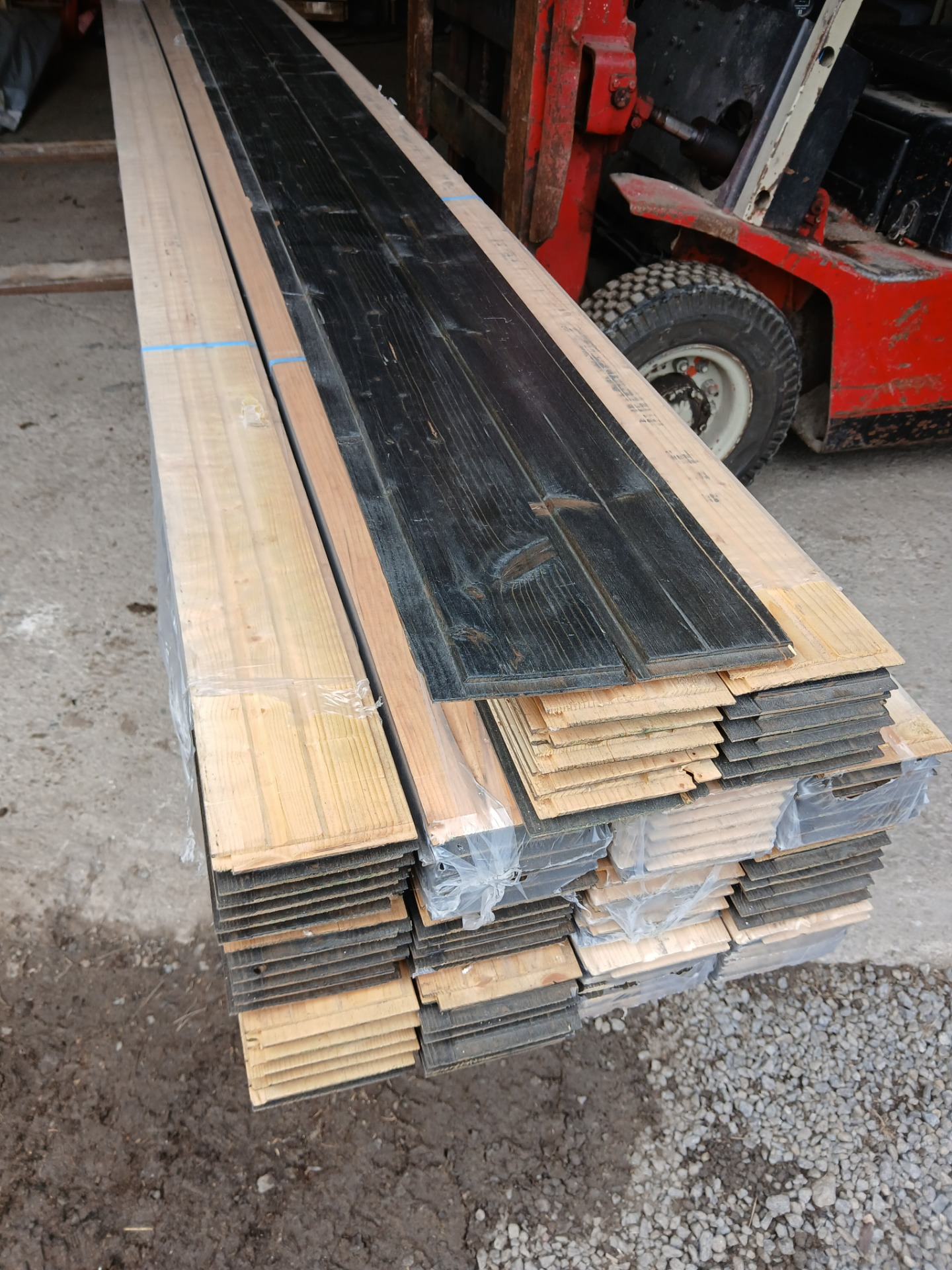Pitkää päätypontattua ja valmiiksi pintakäsiteltyä talouslaadun sisäverhouspaneelia. Terveoksainen kuusi, profiili pyöreäreunainen STP.