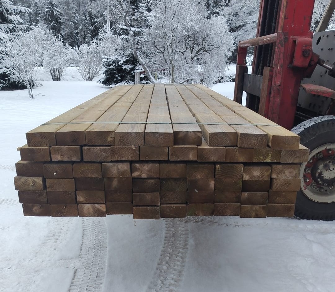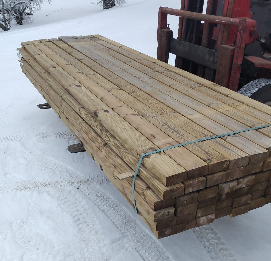 Painekyllästetty runkopuu terassiin, portaisiin tai muuhun piharakentamiseen. Sopivan pituista peräkärryllä noutamiseen.