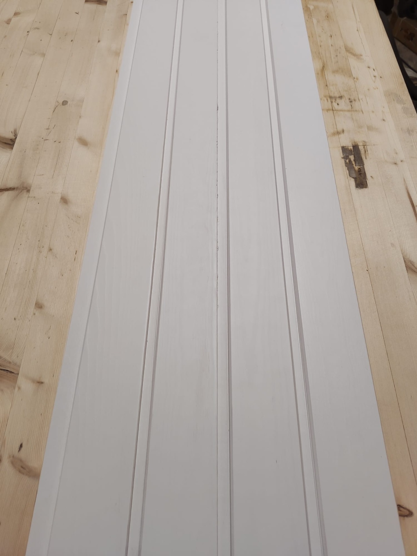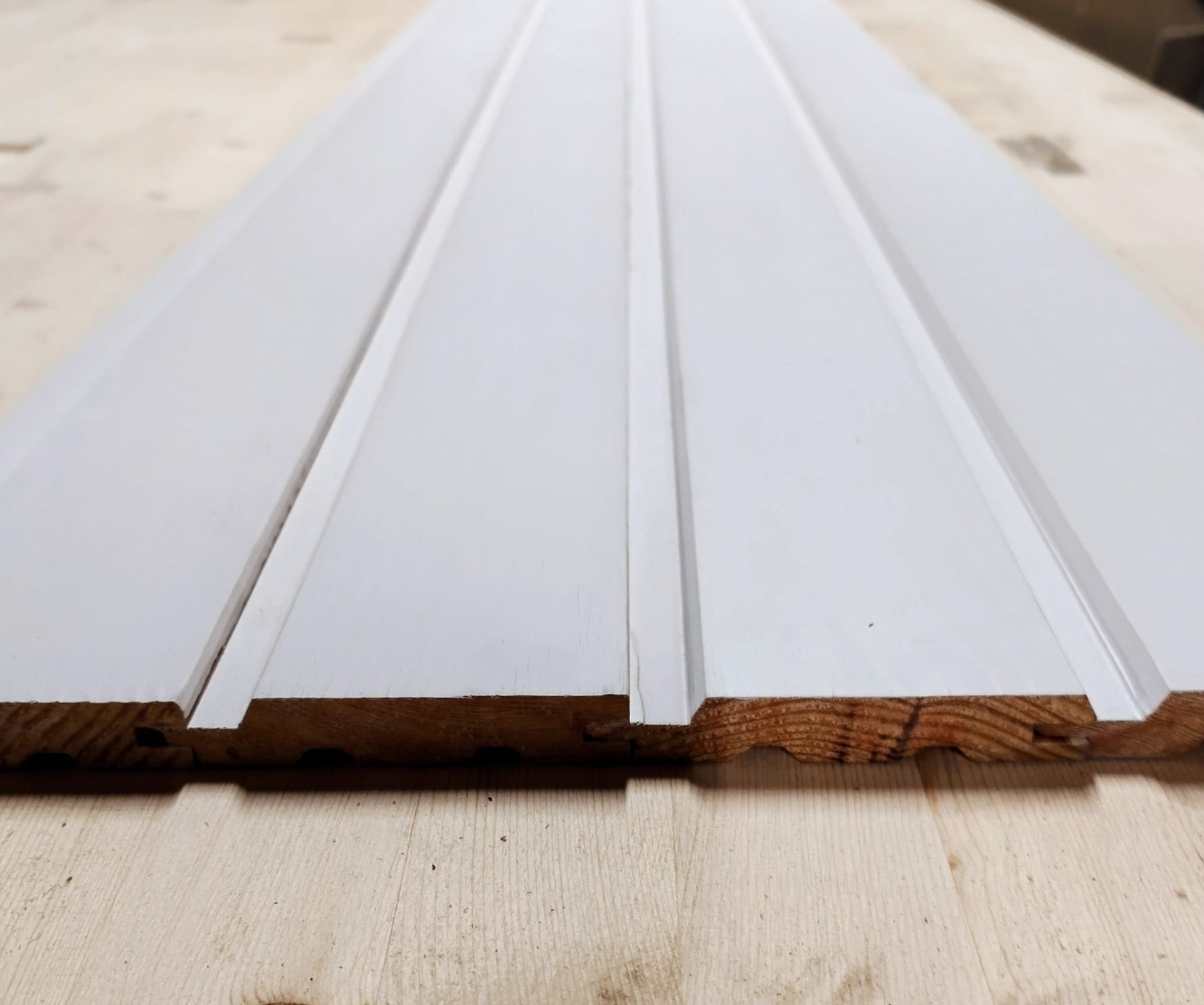 Maalattu valkoinen viistoreunainen STV-profiili. Profiilissa ja ponteissa vähän sanomista, mutta silti valmista valkoista pintaa edullisesti. Toissijaisiin kohteisiin.