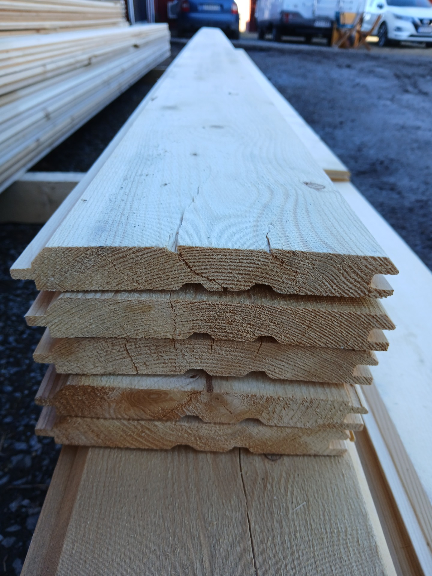 Hirsipaneelin pontilla olevaa hienosahattua paneelia. Puuvalmis.
