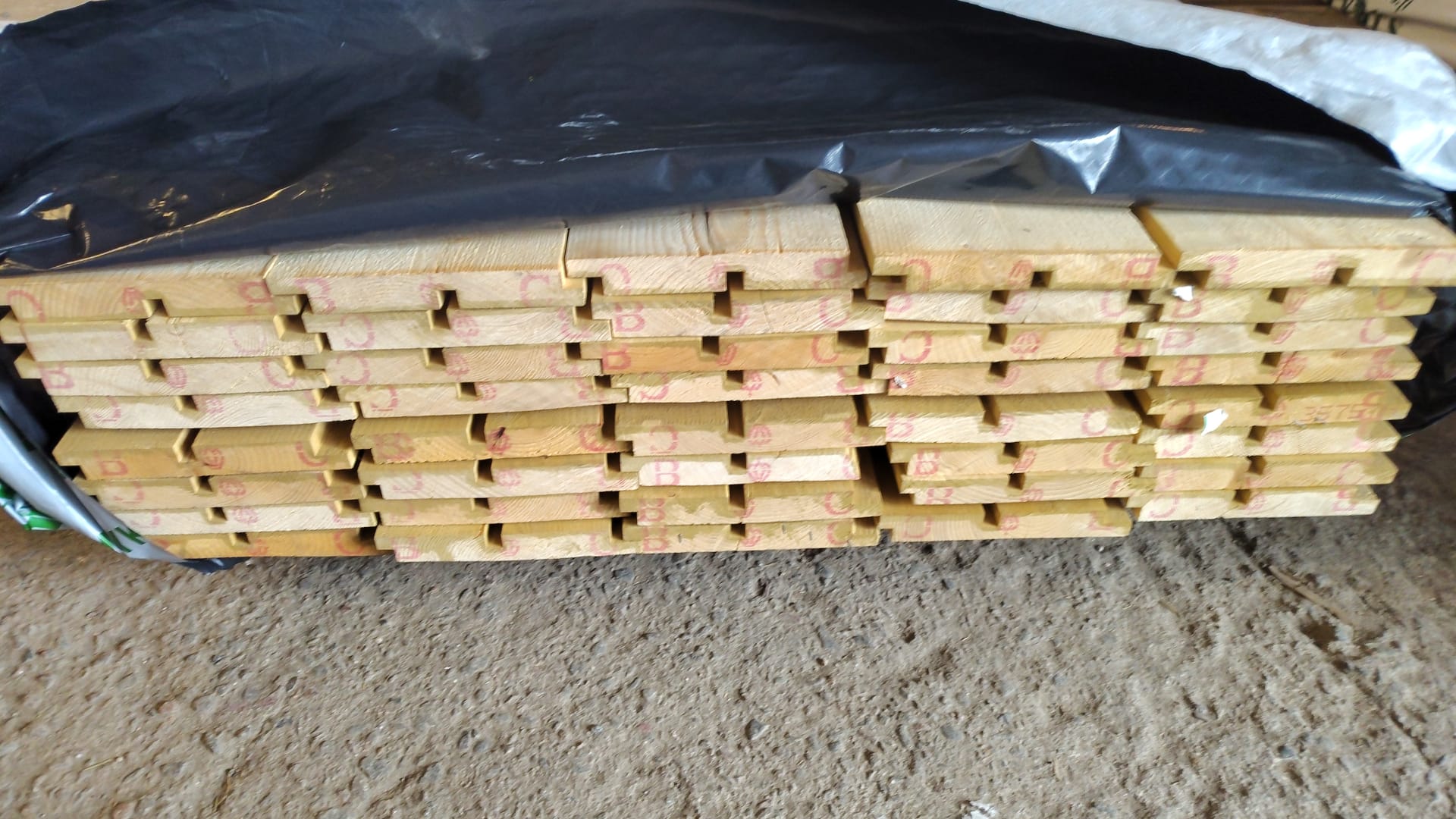 Pystylaudoitukselta näyttävää paneelia leveänä ja pohjamaalattuna alle 20 euron neliöhinnalla. Menekki reilu viisi lautaa metrin etenemälle eli tällä panelointi etenee vauhdilla.